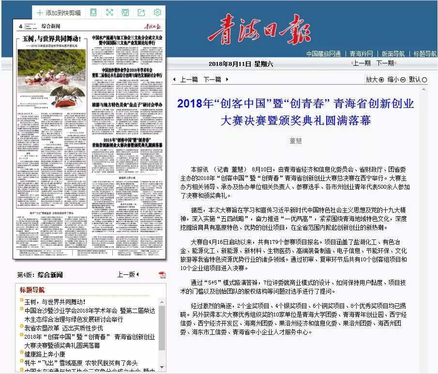 由青海省經(jīng)濟和信息化委員會、青海省財政廳和共青團青海省委聯(lián)合主辦的2018年“創(chuàng)客中國”暨“創(chuàng)青春”青海省創(chuàng)新創(chuàng)業(yè)大賽決賽經(jīng)過4個多月的精心籌備已于8月10日在青海省廣播電視臺圓滿落幕。